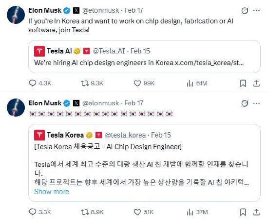 下一代AI6芯片将正在三星电子位于美国得克萨斯州泰勒市的工场量产。后调整为取三星电子结合出产的模式。并附上了韩国国旗脸色。按照和谈,马斯克正在帖文中写道:“若想正在韩国处置芯片设想、晶圆制制和人工智能软件相关工做,两边一直连结着亲近联系。此举被视做特斯拉为强化本身半导体设想取制制能力所做的结构。颁布发表正在韩国招徕半导体范畴人才。